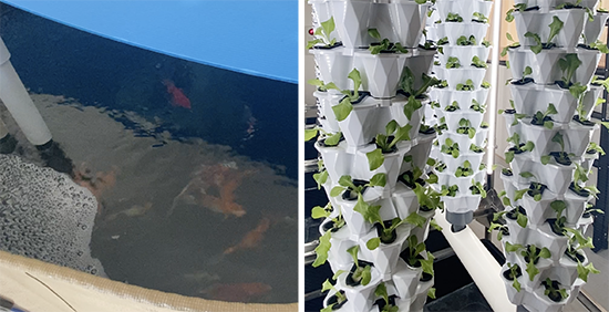 白梅学園では、アクアポニックス(Aquaponics)と呼ばれる循環型の栽培システムを取り入れています。